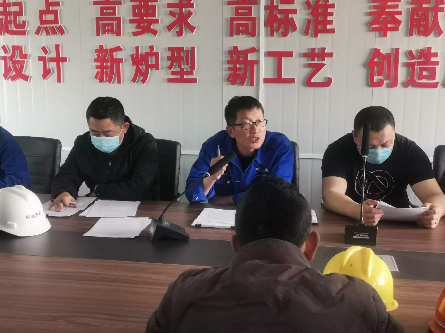 耿治平(中)召開項(xiàng)目部會議部署工作